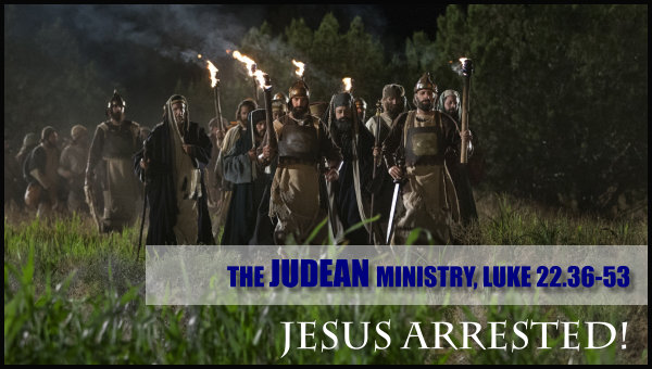 And just like that the moment for his arrest was upon them. A crowd appeared, along with Judas and Roman guards. The fateful and condemning kiss was administered. Seeing what was about to take place, the disciples asked if this was the time Jesus indicated they might need their weapons. From other gospel accounts we know it was Peter who struck out first with his sword, cutting off the right ear of the high priest’s servant! “Enough of this!: Jesus exclaimed, and healed the man’s ear before chastising the mob.