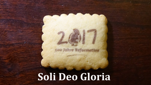 All this week we’ve been celebrating the 500th anniversary of the Reformation by exploring the five “solas” of that period. So far we’ve examined Sola Scriptura, Sola Fidea and Sola Gracia, or Scripture alone, faith alone and grace alone. We’ve seen the importance of these first three in today’s culture, and now we turn to Soli Deo Gloria, or “Glory belongs to God alone”. Before we begin, however, a special shout out to my friend Janice who toured the Reformation landmarks in Germany earlier this year and brought me back the commemorative cookie that is the graphic for today’s article.