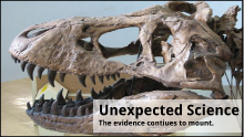 All this week we’ve been talking about how science relates to the Bible, in one way or another. I’ve been saving the best for last. We begin by setting the Way-Back Machine to 2004, when headlines were made by a mostly intact T-Rex skeleton found in Montana. What made these fossils so special, is that the skull contained in tact blood, and the leg offered up other soft tissue – still intact. Creationists (myself included) jumped on this find stating that such things as blood vessels couldn’t survive millions of years indicating that these bones were only a few thousand years old.